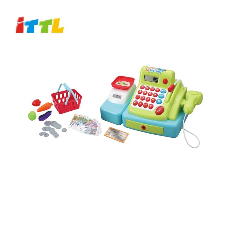 Kids Pretend Play & Preschool Shopping Toy Set Electronic Cash Register Calculator Scanner Plastic Sound Effects Accessories